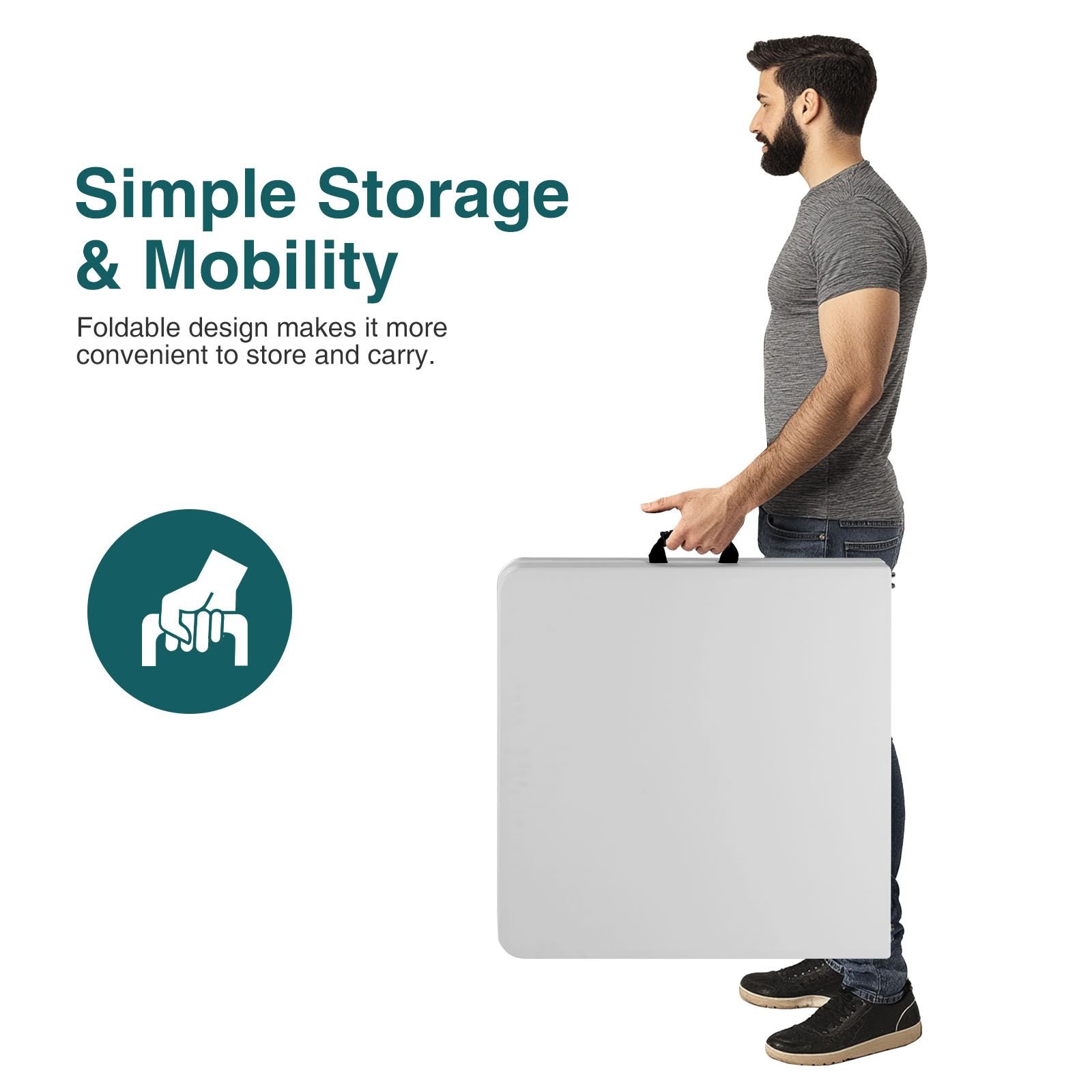 No Assemble Needed - This folding table comes fully assembled, requiring no additional accessories or tools. It can be easily unfolded and used whenever needed. When not in use, it conveniently folds down to a compact size for easy storage and space-saving.