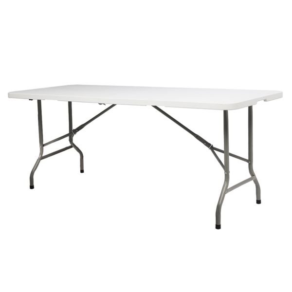 The 6' Folding Table Portable Plastic Indoor Outdoor Picnic Party Dining Camping Tables is constructed of high density polyethylene (HDPE) to offer high strength, water resistance, fire retardance and durability. The legs are made from composite steel with plastic coating and can be folded for easy storage and transport. Rectangular design provides additional seating at both ends of the table. This table is ideal for party, home, office, camping site, courtyard, picnic, barbecue and more. Don't hesitate to order right now!