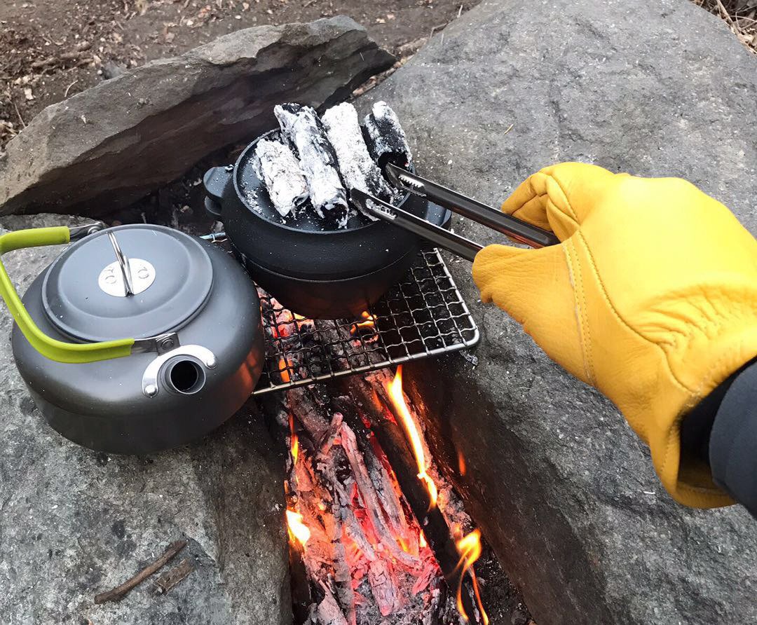 When camping outdoors; you can set up the mesh and burn wood at the bottom; which can be used for barbecues or outdoor pots.