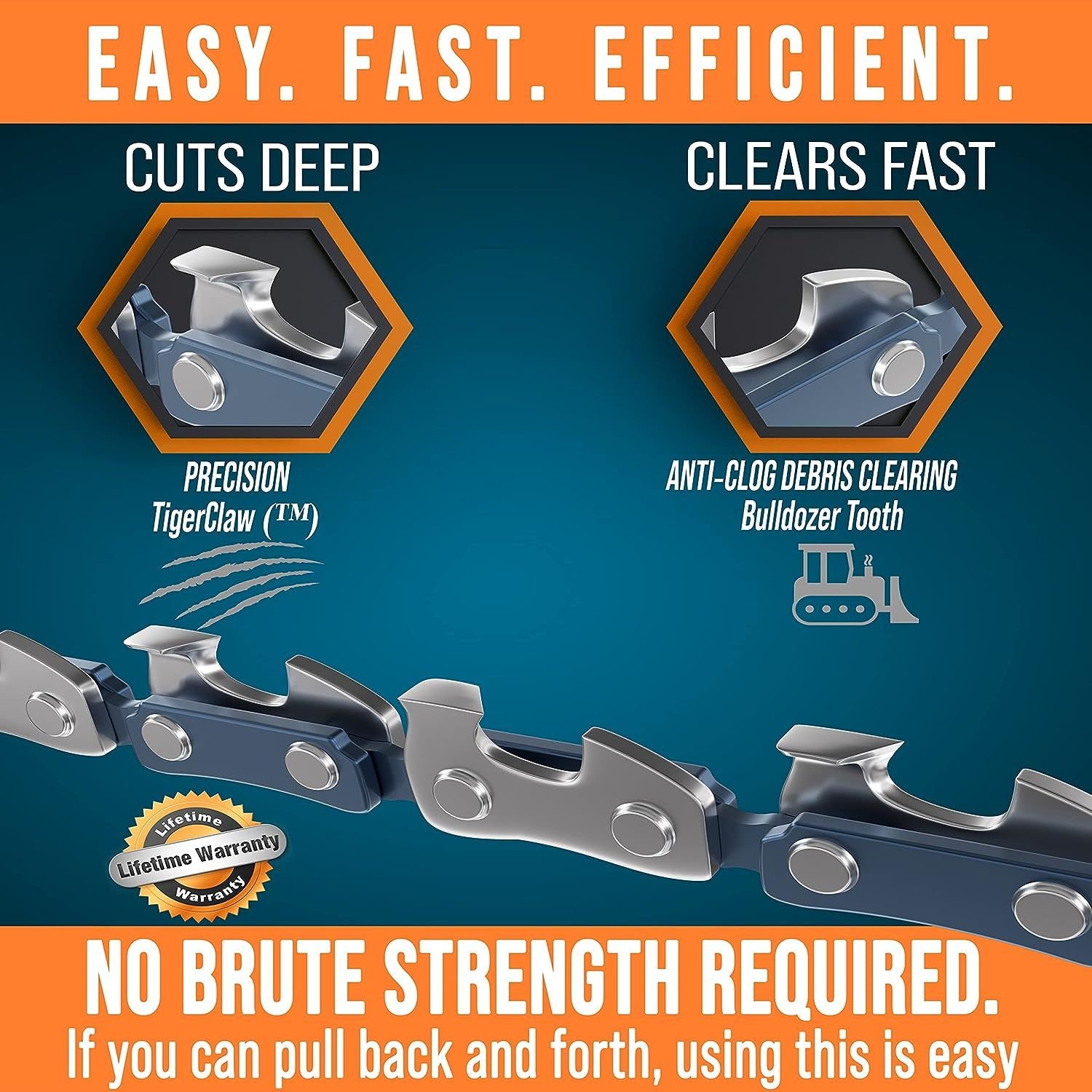5. Fast Cutting: The hand saw chain has a sharp and efficient cutting edge that can remain sharp for long periods, making it ideal for chopping wood in survival situations and outdoor adventures.