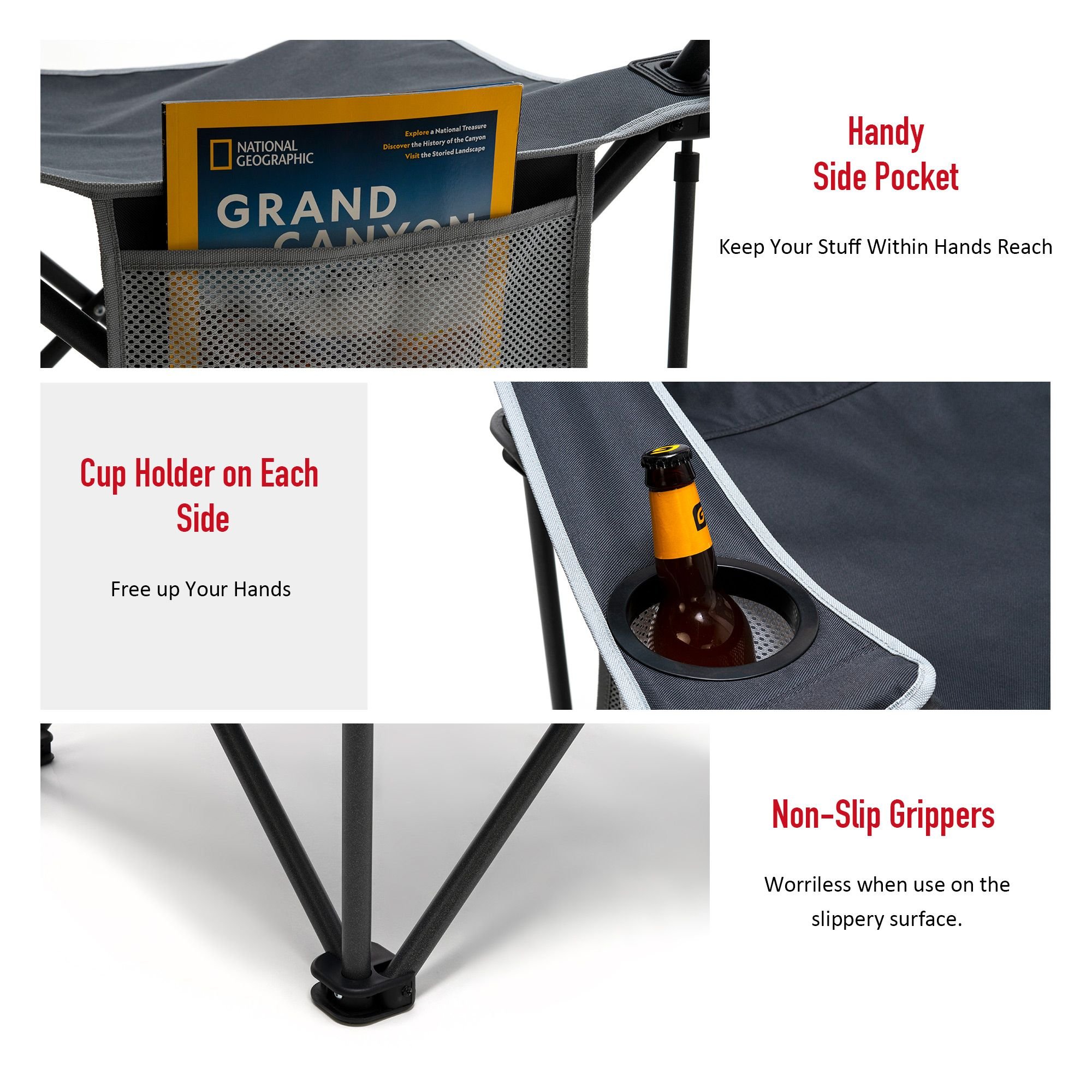 Super Handy: The built-in 2 attached cup holders free your hands while camping, hiking, traveling or watching sporting events, and easily store your drinks, sunglasses, and phone within hands reach.