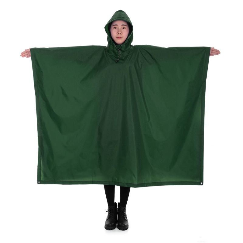 The hooded poncho can be used as a raincoat, camping mat, canopy shelter to block sunshine.