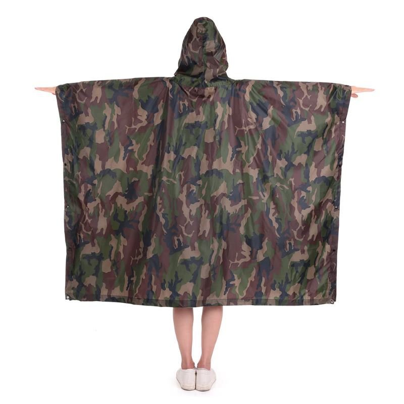The hooded poncho can be used as a raincoat, camping mat, canopy shelter to block sunshine.