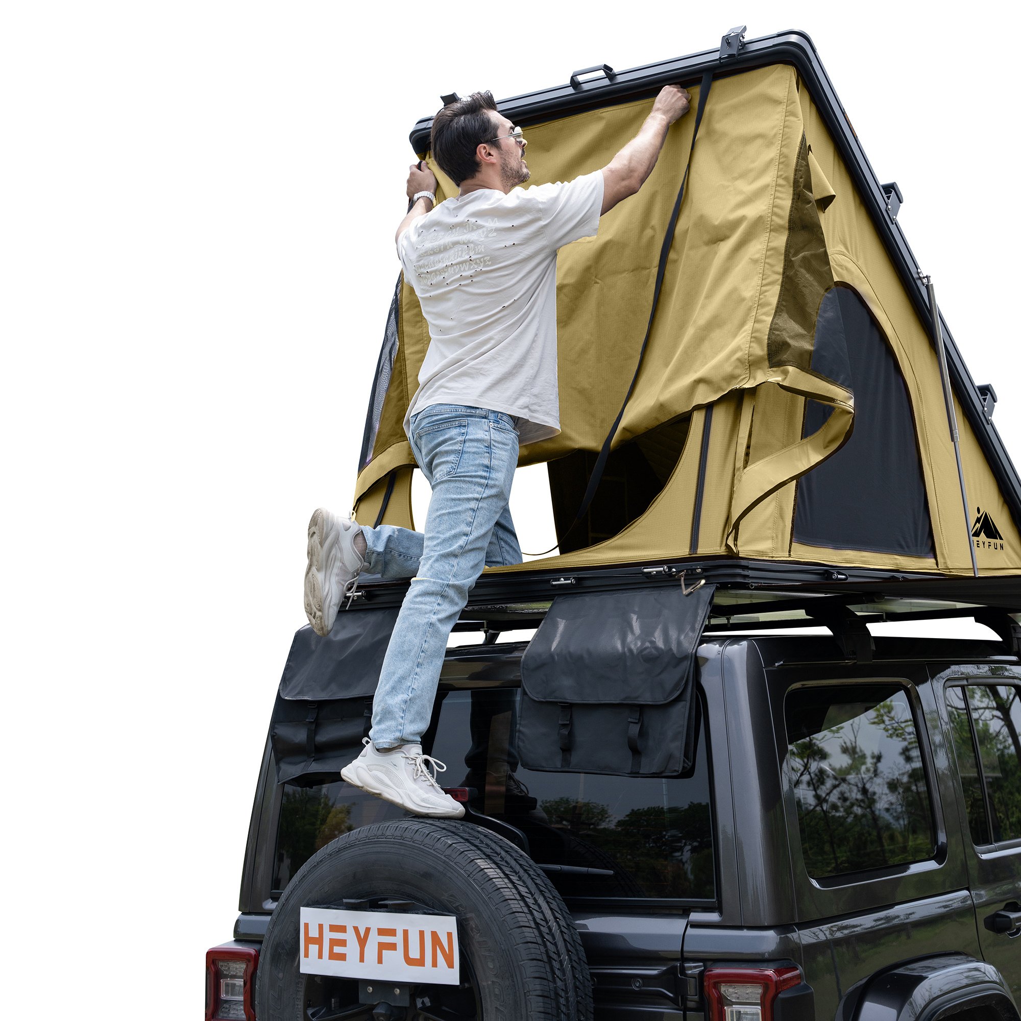 5. [HEYFUN Tent Warranty for 2 Years] - 30-day money-back guarantee for product returns. 2-Year limited warranty covering any manufacturer's defects from the date of purchase, excluding damage resulting from misuse. Lifetime accessory replacement support available. Friendly Reminder: Dry the Rooftop Tent thoroughly before storing it after use on a rainy day.