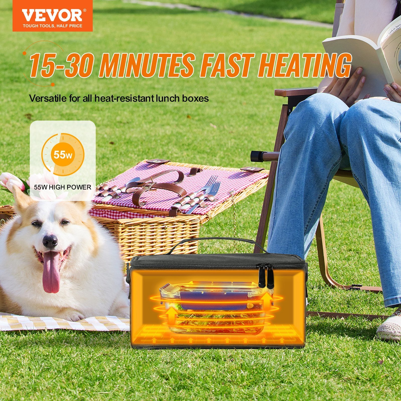 1.Efficient and Quick Heating: Your perfect companion for busy life! VEVOR 2QT large capacity car portable oven features a 55W high-power heating plate, heating up your meals to the perfect temperature in just 15-30 minutes. Enjoy warm, healthy food on the go.