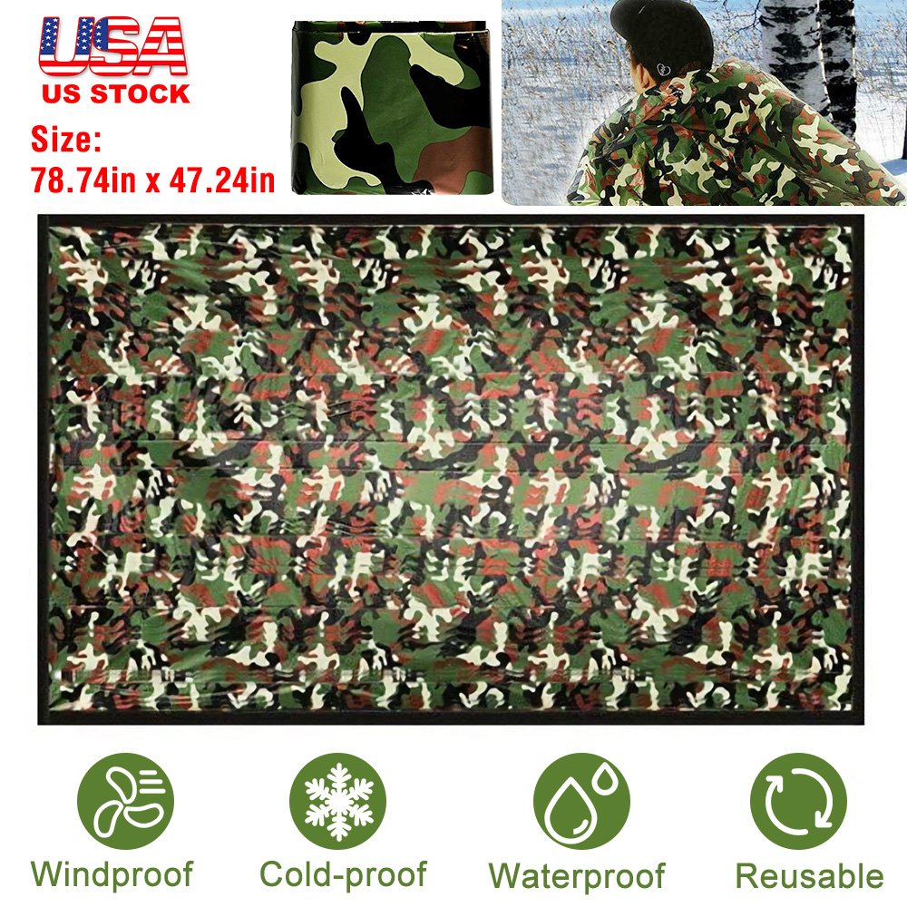 The Camouflage Sleeping Bag is made of aluminum foil, which has a metal coating on the surface. It features waterproof and cold-proof design, it is a essential wild survival equipment and can be used as a sleeping bag during rest to isolate the outside cold air and achieve warmth. Ultra-thin, easy to collect, easy to carry, it is suitable for field exploration, inspection, tourism, disasters.