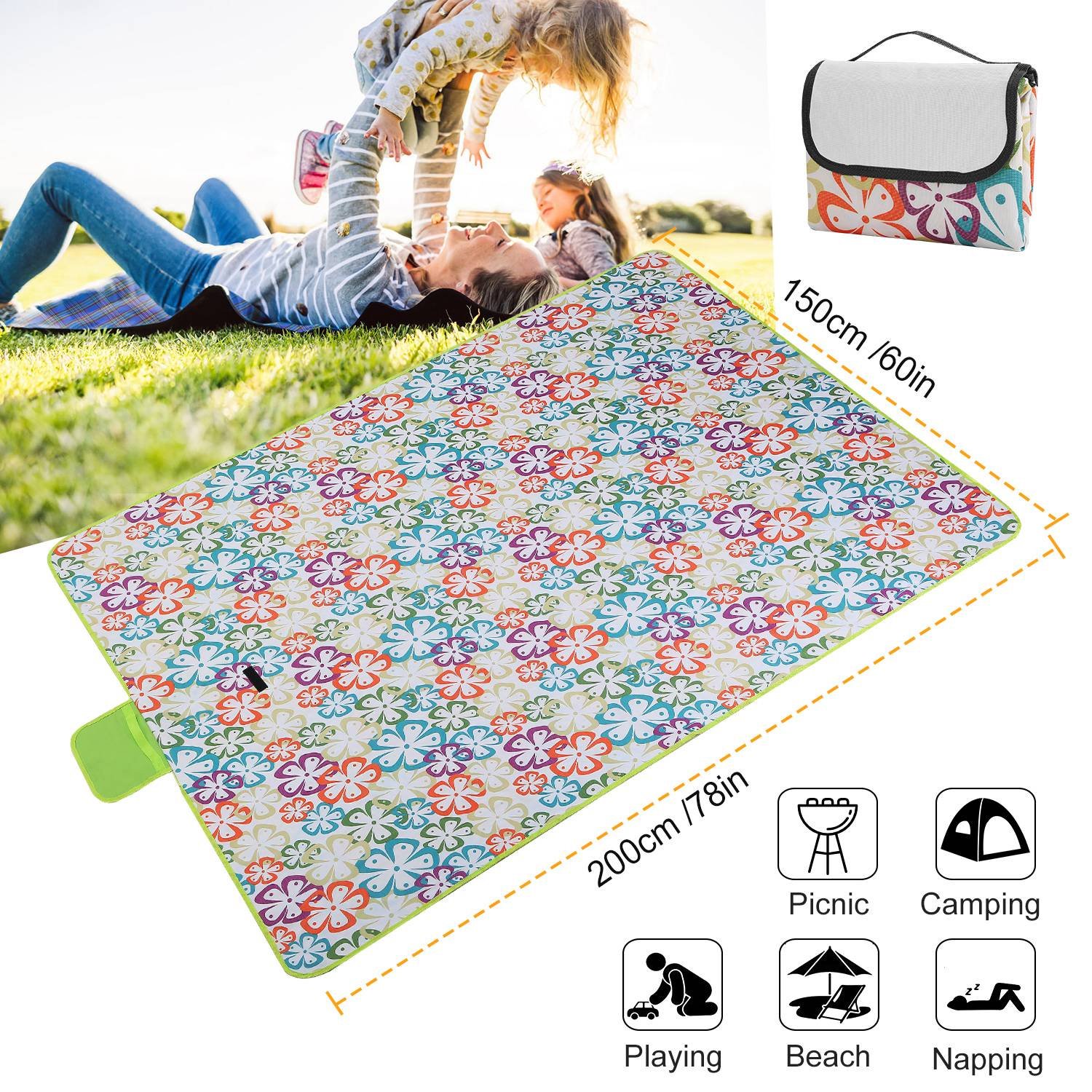 60" x 78" Waterproof Picnic Blanket Handy Mat with Strap Foldable Camping Rug for Camping Hiking Grass Travelling